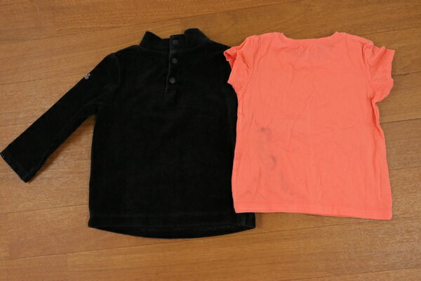 Tシャツは袖にヨレがあり、背面に汚れがございます。