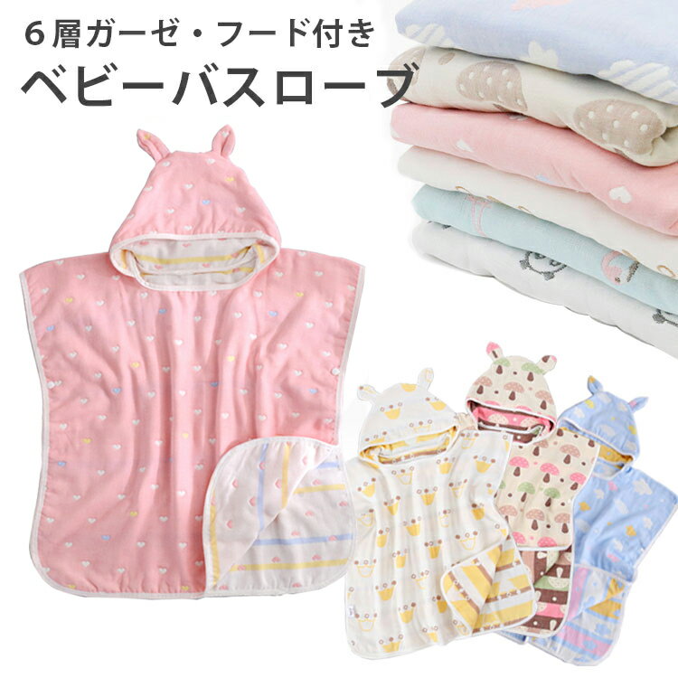 フード付き 耳付き バスローブ 6重ガーゼ ベビー 出産祝い コットン ガーゼ 男の子 女の子 マタニティ ギフト かわいい 沐浴 赤ちゃん バスタオル 湯冷め防止