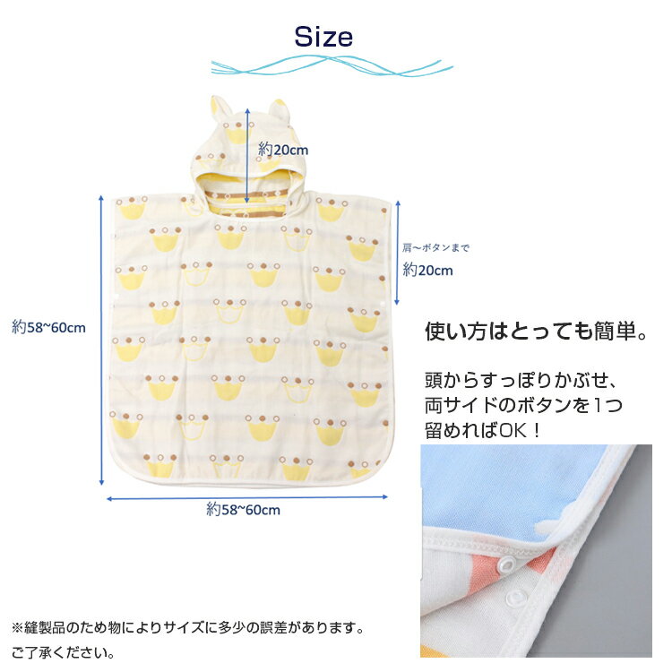 バスローブ ベビー キッズ 赤ちゃん バスタオル フード付きバスタオル ポンチョタオル ガーゼタオル リバーシブル キッズバスタオル お風呂 お昼寝 プール 海 海水浴 タオル キッズ 女の子 男の子 かわいい