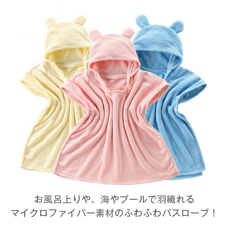 バスローブ ベビー キッズ 赤ちゃんバスローブ バスタオル フード付きバスタオル ポンチョタオル マイクロファイバー キッズバスタオル こどもバスローブ お昼寝 ベビー お風呂 プール 海 海水浴 夏休み M L 女の子 男の子