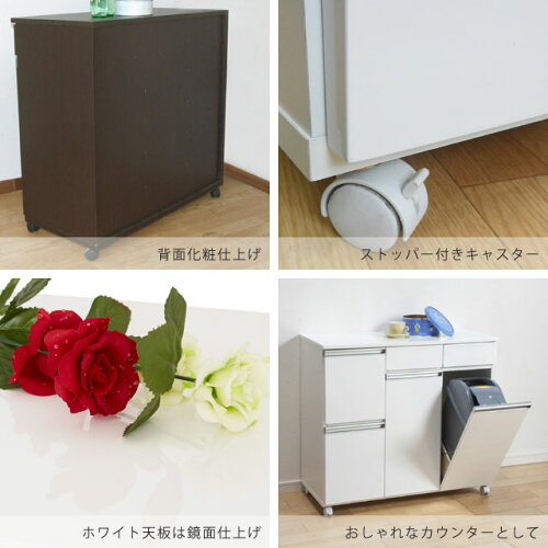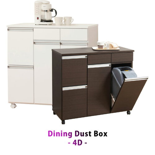 ゴミ箱 ダイニング ダストボックス ペール キッチンカウンター 背面化粧仕上げ キャスター付き おしゃれ 清潔感 引出し 高級感 白 ホワイト 完成品 ダイニングダストボックス4D(ホワイト/ブラウン) 【送料無料】